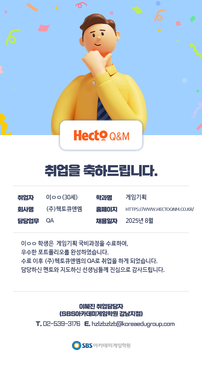 (주)헥토큐앤엠 - 입사를 축하드립니다.